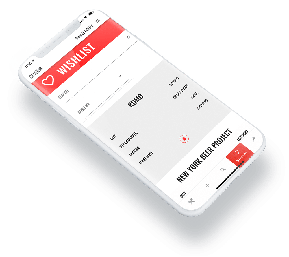 Search the Devour Network for other Chef’s Recomendations. You can even search by City or Cusisine type. Find the restaurants you want to try and add them to your wishlist with the Heart icon.